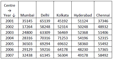 Number of candidates appeared in a Competitive Examination from Five Centres over the Years Numbers