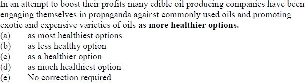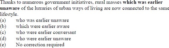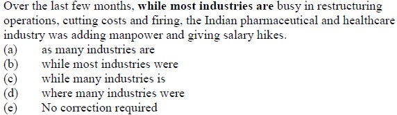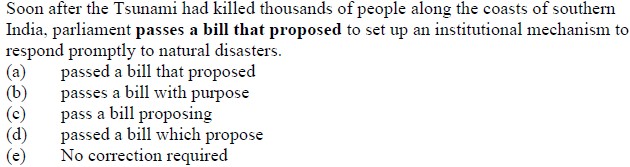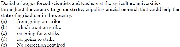 DIRECTION (Qs. 131 to 135): Which of the phrases (a), (b), (c) and (d) given below each statement should replace the phrase printed in bold in the sentence to make it grammatically correct ? If the sentence is correct as it is given and 'No correction is required', mark (e) as the answer.