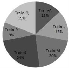 The number of passengers in Train-Q is approximately what percentage of the total number of passengers to Train-A and Train-R?