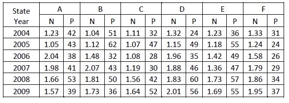 Number (N) of candidates (in lakhs) appearing for an entrance examination from six