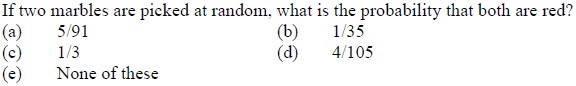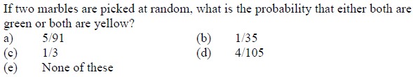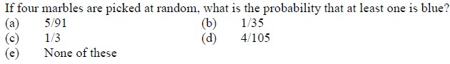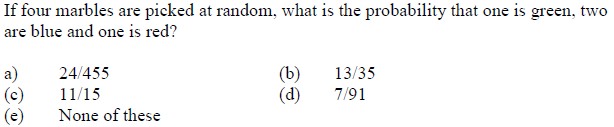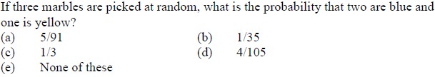 DIRECTIONS (Qs. 56 to 60): Study the given information carefully and answer the questions that follow: An urn contains 6 red, 4 blue, 2 green and 3 yellow marbles.