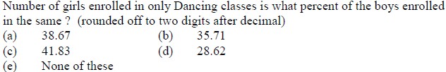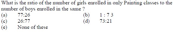 A school consisting of a total of 1560 students has boys and girls in the ratio of 7 : 5. All the students are enrolled in different types of hobby classes, viz Singing, Dancing and Painting. One-fifth of the boys are enrolled in only Dancing classes. Twenty percent of the girls are enrolled in only Painting classes. Ten per cent of the boys are enrolled in only Singing classes. Twenty four per cent of the girls are enrolled in both singing and dancing classes together. The number of girls enrolled in only singing classes is two hundred percent of the boys enrolled in the same. One thirteenth of the boys are enrolled in all the three classes together. The ratio of boys enrolled in Dancing and Painting classes together to the girls enrolled in the same is 2 : 1. Ten percent of the girls are enrolled in only Dancing classes whereas eight per cent of the girls are enrolled in both Dancing and Painting classes together. The remaining girls are enrolled in all the three classes together. The number of boys enrolled in Singing and Dancing classes together is fifty per cent of the number of girls enrolled in the same. The remaining boys are enrolled in only Painting classes.