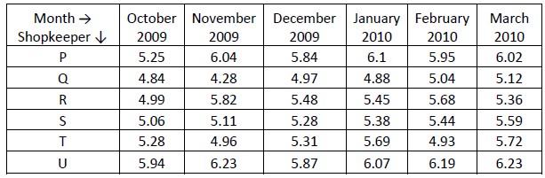 PROFIT (IN Rs. ‘000) MADE BY SIX DIFFERENT SHOPKEEPERS OVER THE MONTHS